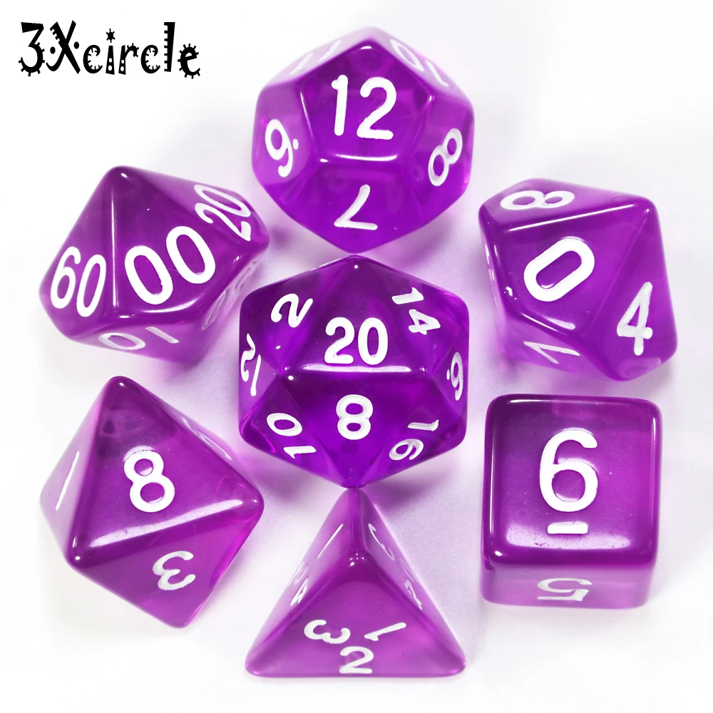 Набор из 7 прозрачных полупрозрачных многогранных игральных костей-классический набор костей для ролевых игр для настольных игр