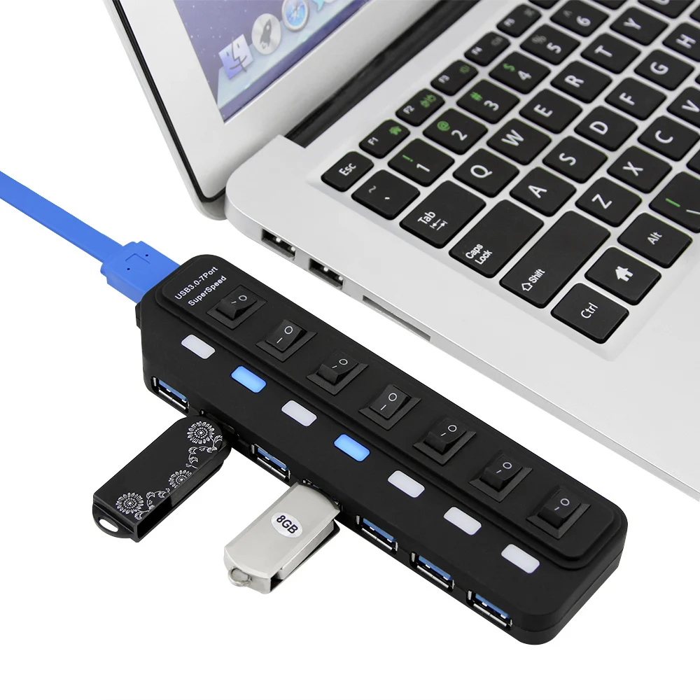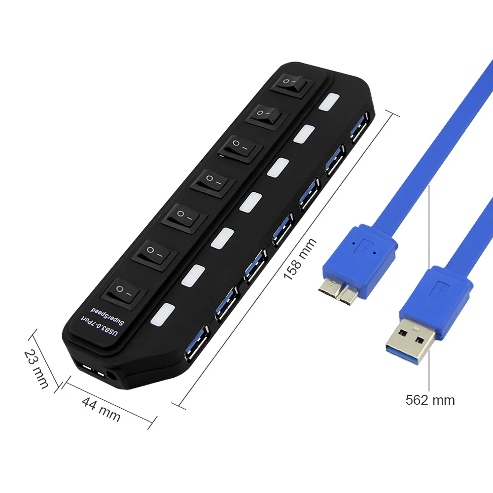 7-портовый концентратор USB 3,0 с супер скоростью передачи данных до 5 Гбит/с.