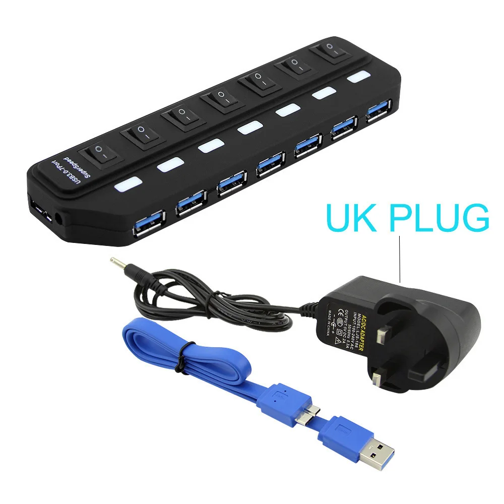 CHYI 7 портов USB 3,0 концентратор USB-A к USB3.0 со светодиодным выключателем вкл/выкл DC 5 В/2A блок питания высокоскоростной сплиттер адаптер для ПК ноутбука