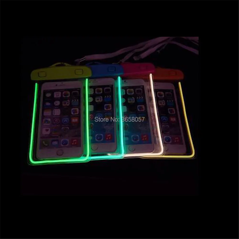 100% новое высокое качество Светится в темноте Название: Универсальная водонепроницаемая сумка для телефона Материал: АБС + ПВХ Толщина: двухслойный 60 шелк Размер: 10,5*20 см (для смартфона 4,8 "- 6") Цвет: розовый, светло-голубой, зеленый, синий, оранжевый, розово-красный, желтый, белый, черный, темно-синий Пожалуйста, сообщите мне, какой цвет вам нравится при заказе, или я отправлю вам случайно Мы протестировали все зарядные устройства для вас, они хорошего качества, вы можете купить их свободно