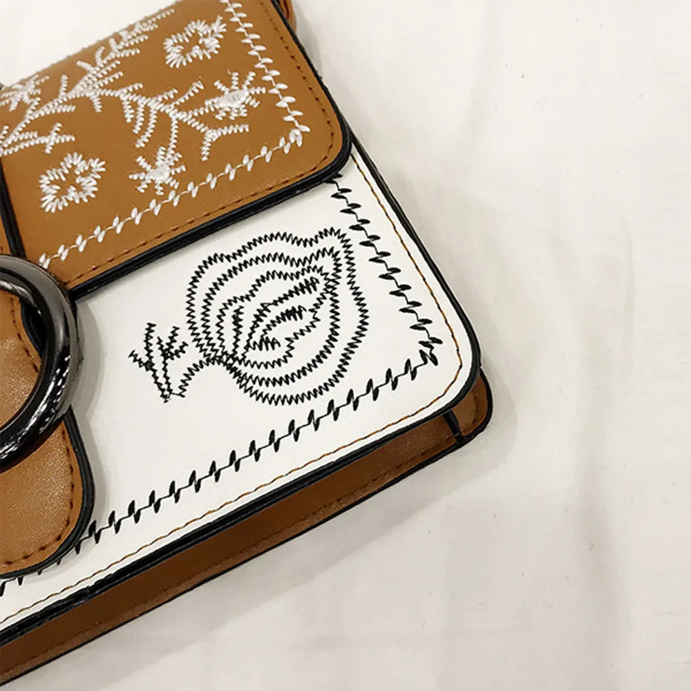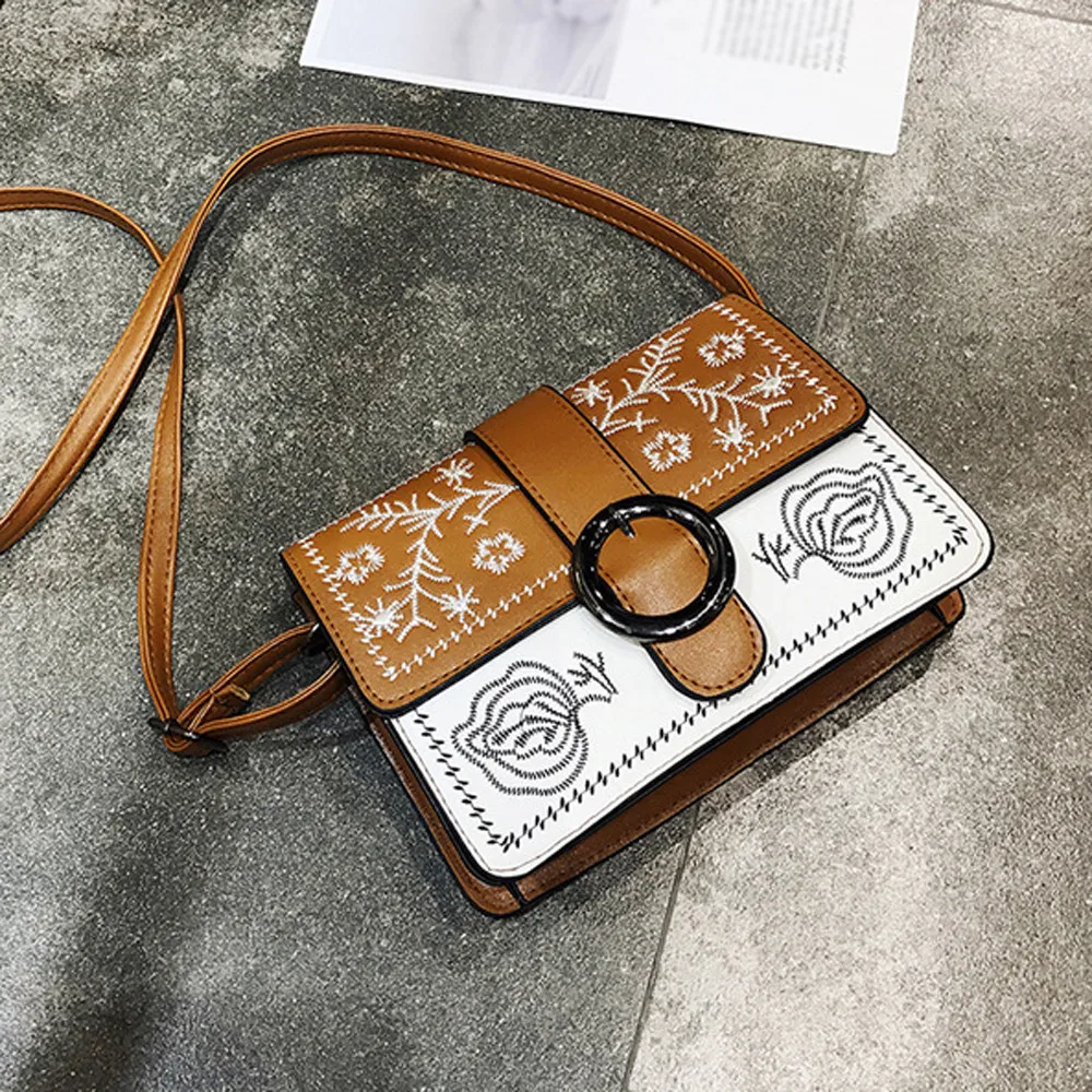 Для женщин кожа вышивка сумка Сумка Кроссбоди Мешок