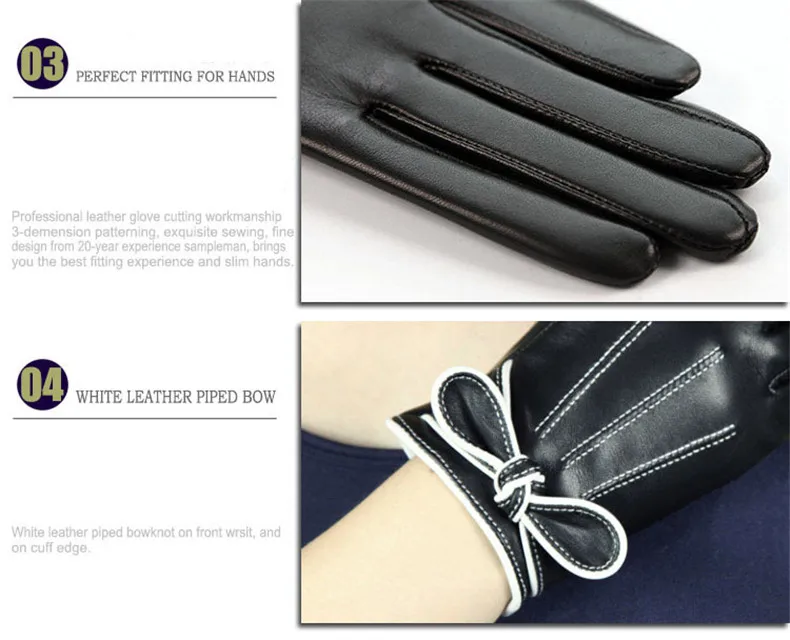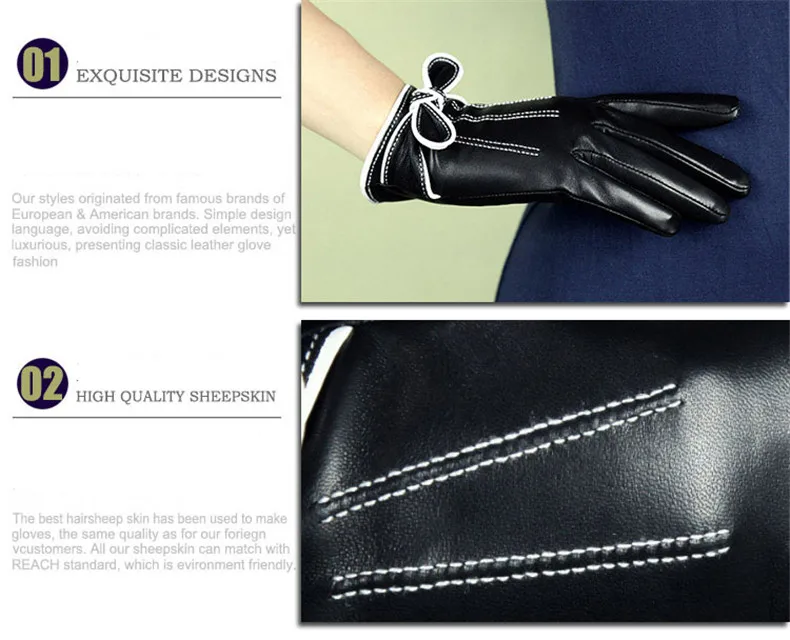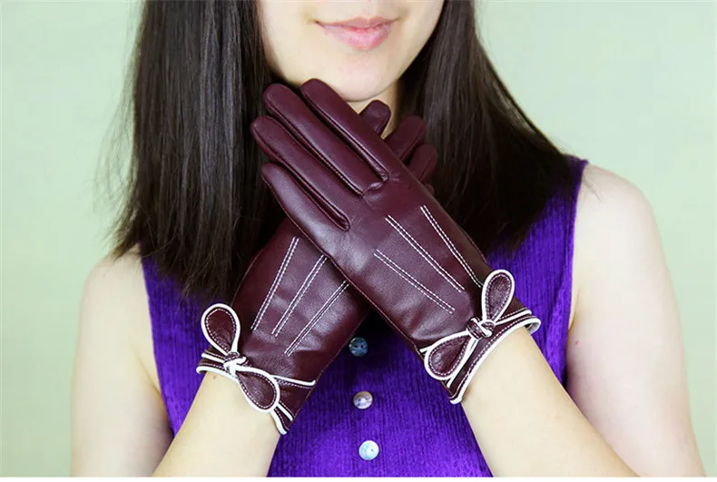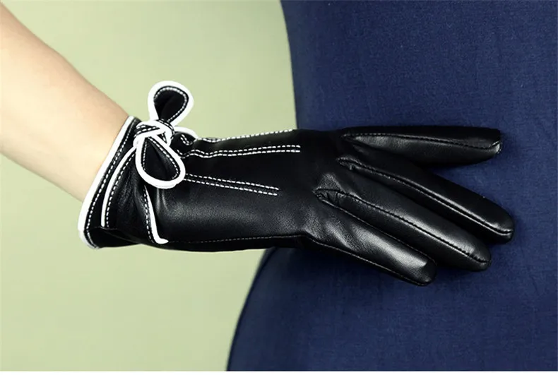 Женские перчатки из натуральной кожи на запястье с бантиками-бабочками; Сезон осень-зима; Теплые перчатки для вождения с подкладкой из овечьей кожи; Женские XC-101