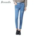 Джинсы с высокой талией, джинсы в стиле БФ, зауженные джинсы с рваной отделкой, джинсовые брюки, модные укороченные брюки, женские узкие брюки 2016