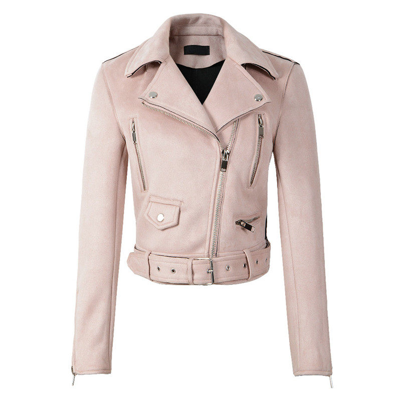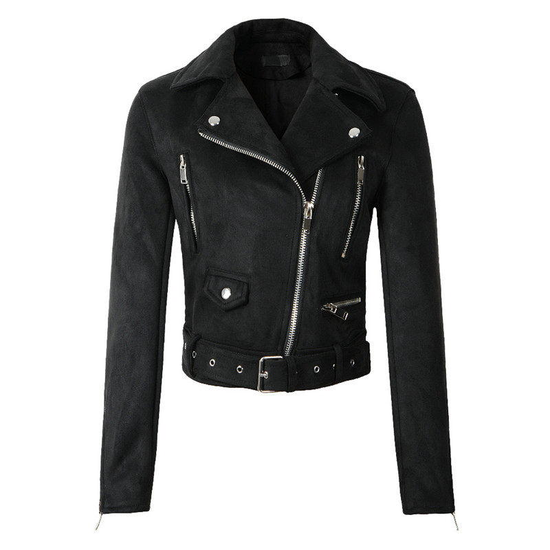 Женское укороченное пальто мотоциклетная куртка без воротника с металлическим