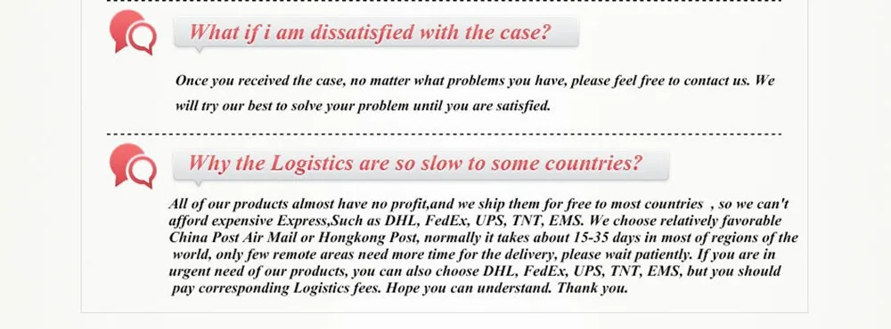 3.If you need the full tracking ,Please choose the "China Post Registered Air Mail "or “Aliexpress Standard Mesthod”, and add the money for the tracking.