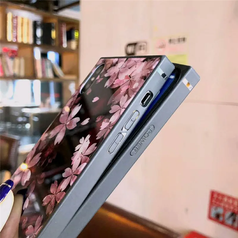 Красивые цветы квадратный чехол для iPhone X 6 6s 7 7 Мода Закаленное стекло Мягкий край чехлы для телефонов для iPhone 6 6s 7 8 плюс пара