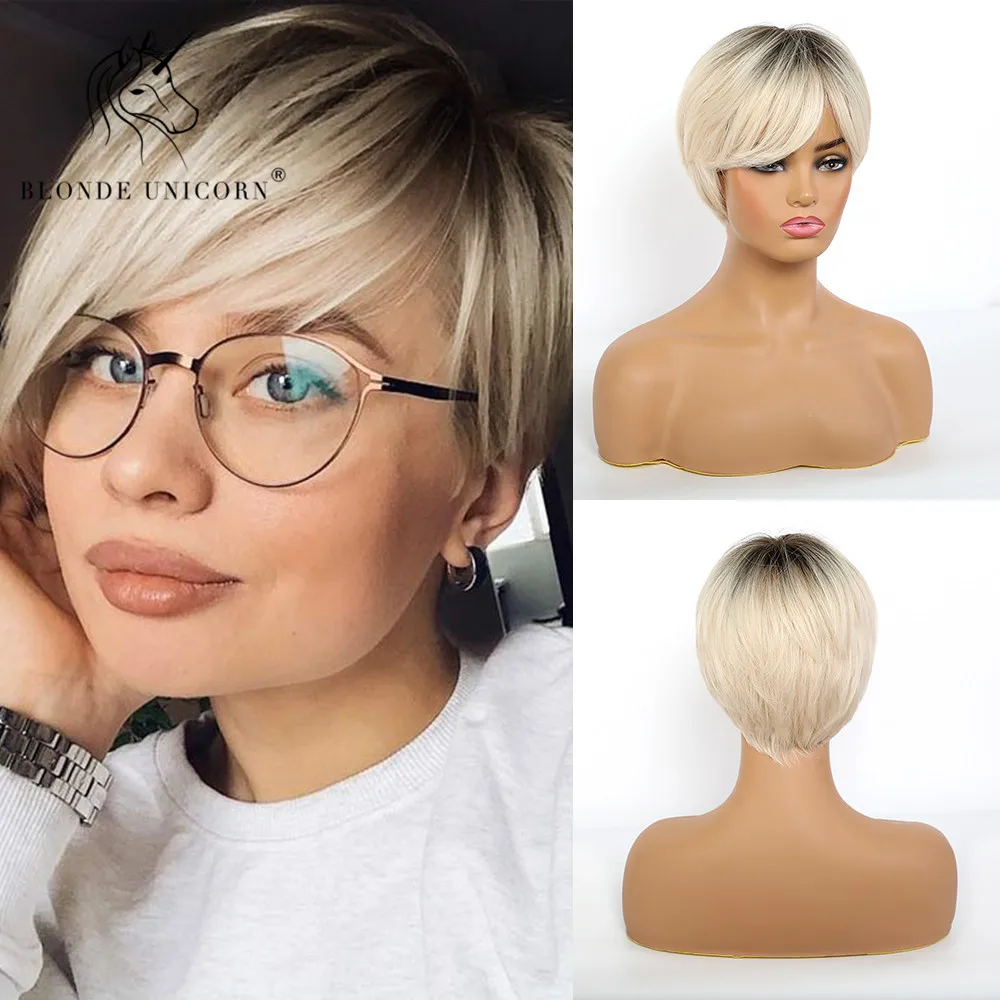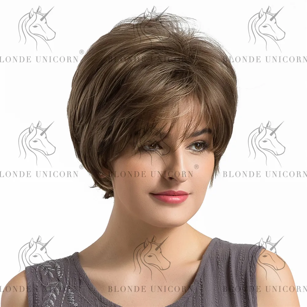 Парик из синтетического темного корня, темно-коричневого цвета, Короткий прямой парик для женщин с боковой бахромой, коричневый парик из высокотемпературного волокна