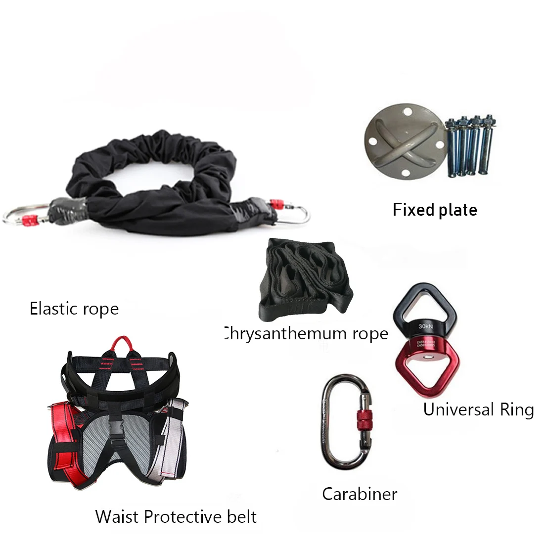 4.Одна эластичная веревка (две головки в комплекте с карабином): 12 мм импортированное качество латекса, выберите правильный вес веревки для ваших нужд.