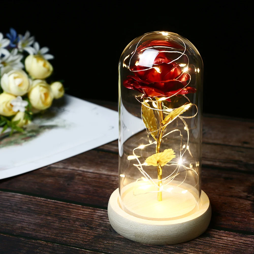 Материал изделия: войлочная Роза + стеклянная крышка + деревянная основа + 20 светодиодов