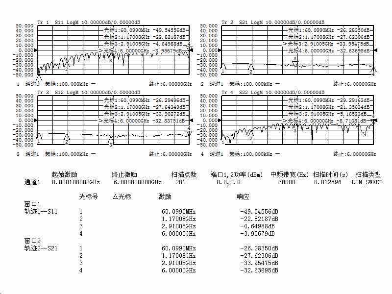 В-третьих, результаты измерений:1. S параметр, когда затухание настроено на 1 дБ