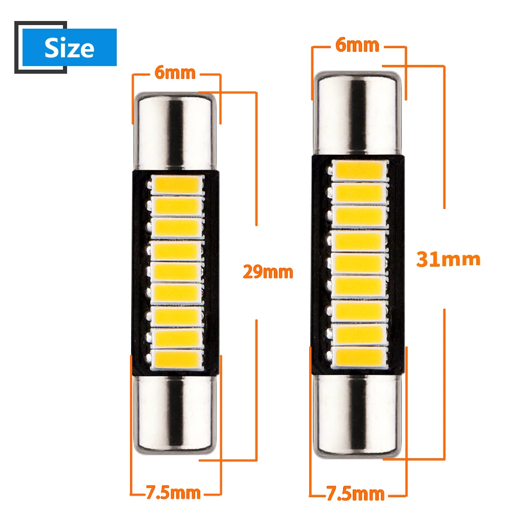 10 шт 29 мм 31 мм 4014 9 SMD Led светильник для чтения 360Lm Яркий T6 Festoon Dome DC 12V белый интерьер Авто Лампа для крыши автомобиля-053