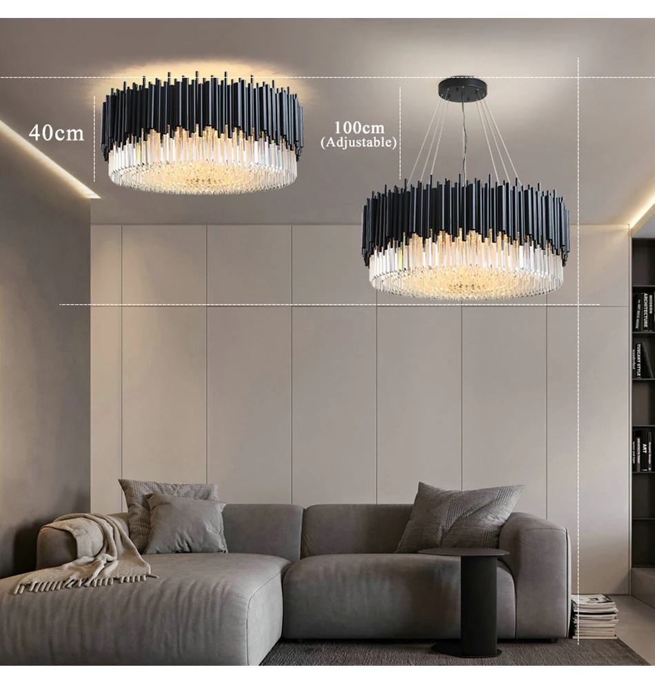 Роскошный современный светильник, люстра для гостиной, круглая, черная, хрустальная лампа, домашний декор, светодиодная Хрустальная осветительная арматура, большая Подвесная лампа