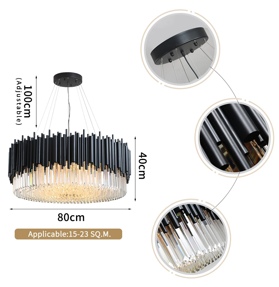 Бренд: Youlaike Номер товара 58948 Стиль товара: современный Материал: нержавеющая сталь, кристалл K9 Размер: диаметр 60 см, диаметр 80 см, диаметр 100 см Источник: светодиодный светильник E14 Цветовая температура: теплый светильник (3000K), холодный светильник (6000K) Напряжение: AC110-240V Доставка: 6-8 дней Применение: гостиная, гостиная, спальня