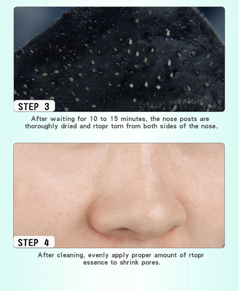 1. Удалите грязь и жир с лица, удалите теназальную пасту из мешка и откройте прозрачную защитную пленку. 2. Тщательно смочите нос водой, приклейте тенозную пасту, аккуратно прижмите руку и удалите воздух, чтобы нос можно было склеить вместе с носом. 3. После ожидания 10-15 минут, столбы носа тщательно высушены и рвутся с обеих сторон носа. 4. Очистите наклеенную кожу.