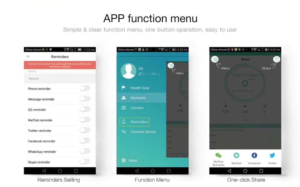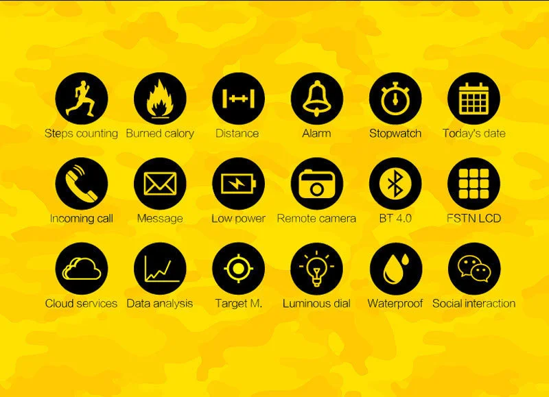 Особенности: -Совместимость с Bluetooth:4,0. Стабильный, быстрый и сверхнизкое потребление -Шагомер: Установите свою цель здоровья и просматривайте свою повседневную деятельность, проверяйте и анализируйте данные в любое время -Удаленная камера в пределах 10 м -Напоминание: телефонный звонок, сообщение, Twitter Facebook, WhatsApp, Skype -Простое и понятное функциональное меню, управление одной кнопкой, простота использования -LCD отображает шаги, расстояние и калории -3 группы звуковой сигнализации зуммера, вы ничего не пропустите -Профессиональный секундомер поддерживает подраздел время и фоновое Пробуждение -Водонепроницаемость 30 м, не прикасайтесь к горячей воде и не нажимайте клавиши под водой. -12 месяцев в режиме ожидания в режиме экономии, нет необходимости рассматривать замену батареи Характеристики: Совместимость с Bluetooth:4,0 Вызовы по Bluetooth: напоминание о телефонных звонках Сообщение: напоминание о сообщении Трекер здоровья: шагомер Пульт дистанционного управления: Удаленная камера Тип уведомления: Facebook, Skype, Twitter и WhatsApp Группы будильников: 3 Типы оповещения: Кольцо Секундомер: поддерживается Экран: ЖК Размер экрана: 1,12 дюйма Тип аккумулятора: 1 x батарея CR2032 (входит в комплект) Емкость аккумулятора: 210 мАч Время работы в режиме ожидания: 12 месяцев Материал чехла: ТПУ Материал ремешка: ТПУ Совместимые ОС: Android, IOS Совместимость: системы Android 4,3/iOS 7,0 и выше Язык приложения: английский, русский, французский, итальянский, испанский, португальский, немецкий, японский, корейский, арабский