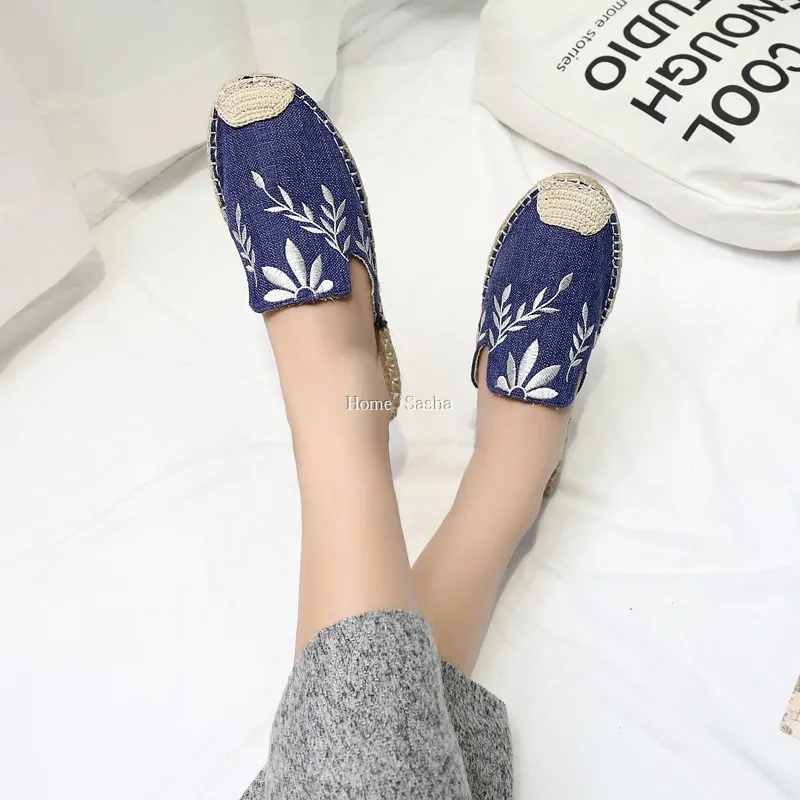 Дизайнерская трикотажная парусиновая обувь на плоской подошве; Женская обувь с вышивкой; Женские шлепанцы; Sandalias mujer; 2018; Модные мюли; zapatos mujer