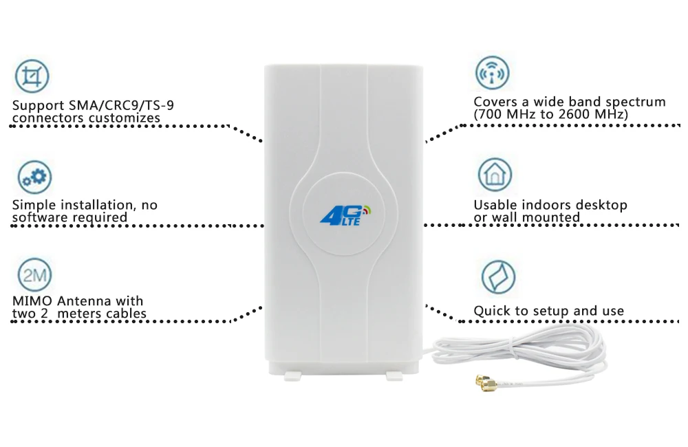 Антенна MIMO (несколько в нескольких выходах) 4G LTE антенна предназначена для обеспечения надежного соединения 4G для широкого диапазона устройств 4G.