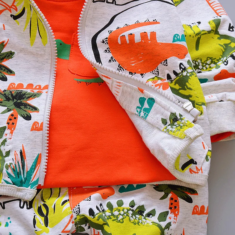 Весенне-осенние комплекты одежды для маленьких мальчиков и девочек Детский костюм с героями мультфильмов детские толстовки с капюшоном на молнии, футболка и штаны детские хлопковые спортивные костюмы из 3 предметов для От 0 до 4 лет