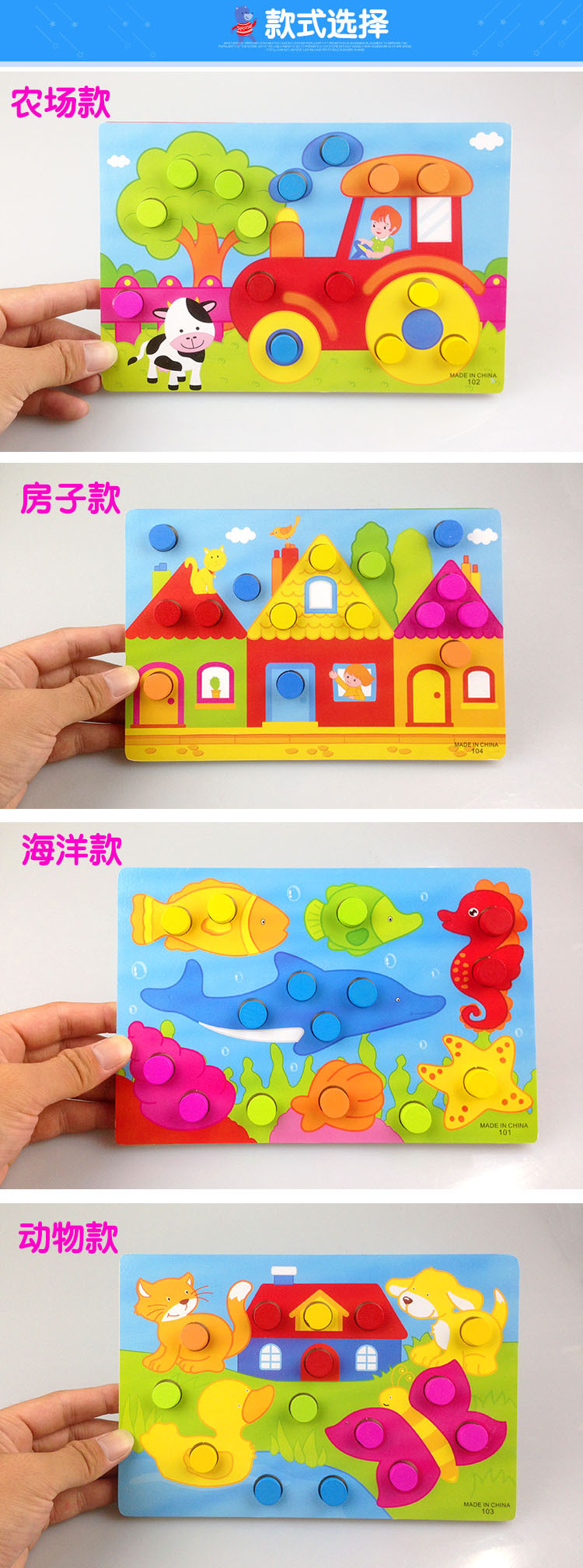 Candice guo деревянная игрушка цветной деревянный блок цветная игра мультяшный узор доска ферма животное морской океан домик детский подарок 4 шт./компл.