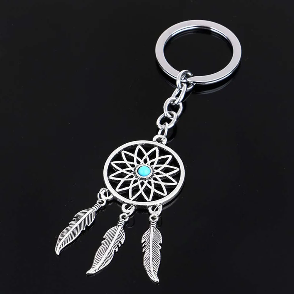 2018 moda sueño catcher tono clave cadena plata anillo pluma borlas llavero para regalo