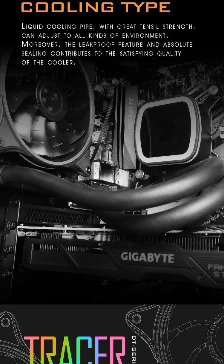 Интегрированное водяное охлаждение Darkflash, без технического обслуживания, не нужно добавлять воду и холодную жидкость для жизни. 12 см с температурным контролем Интеллектуальный вентилятор Авроры RGB с изменением цвета, с технологией N.I.T. шума, всесторонний бесшумный дизайн. Керамические подшипники. Эффект изменения цвета: дыхание. Постоянный светильник. Мигание. Полностью Чистая медь, поглощающая горячую воду, холодная головка, подходит для процессора, чтобы полностью поглощать тепло. 27 мм алюминиевый радиатор, волновой диапазон высокой плотности холодного ряда, с помощью s-образных ребра, увеличение площади рассеивания тепла. Обеспечивает все крепления на платформе для процессоров INTEL и AMD и прост в установке. Тканая сетчатая Высококачественная резиновая трубка с водяным охлаждением, нулевое проникновение, прочная и долговечная. Эффективная теплоотдача, блестящий светильник, высокопросвечивающий 3d-дизайн с холодной головкой.