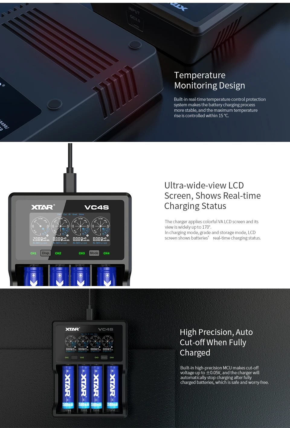 • Уникальный эффективный метод зарядки (TC-CC-CV) с 0,5ax2.