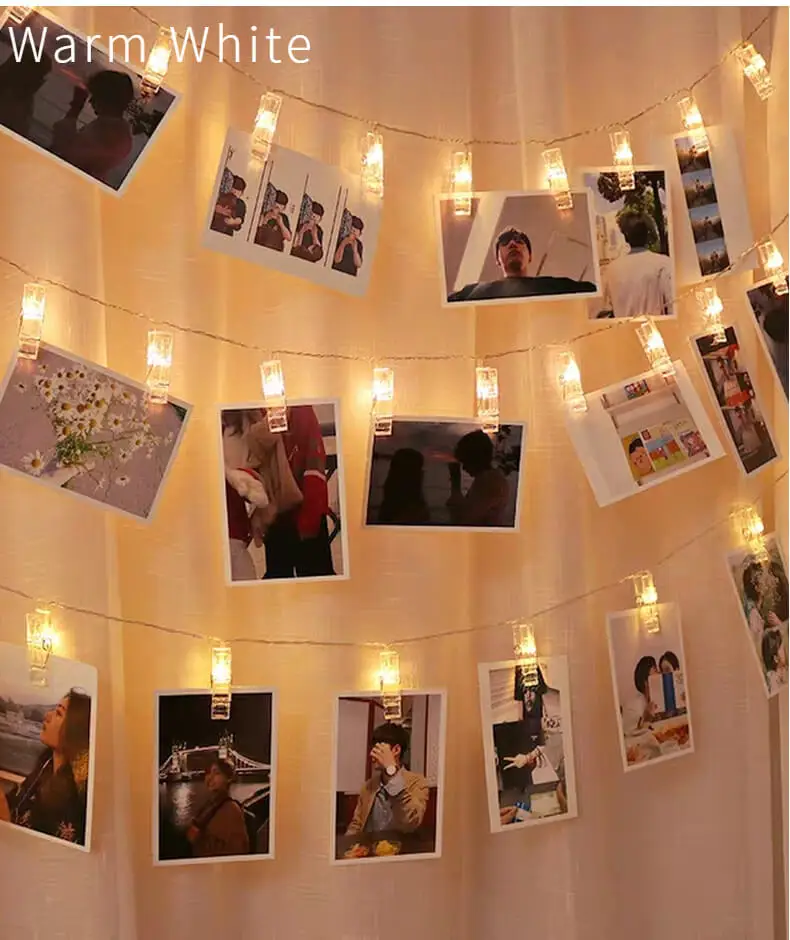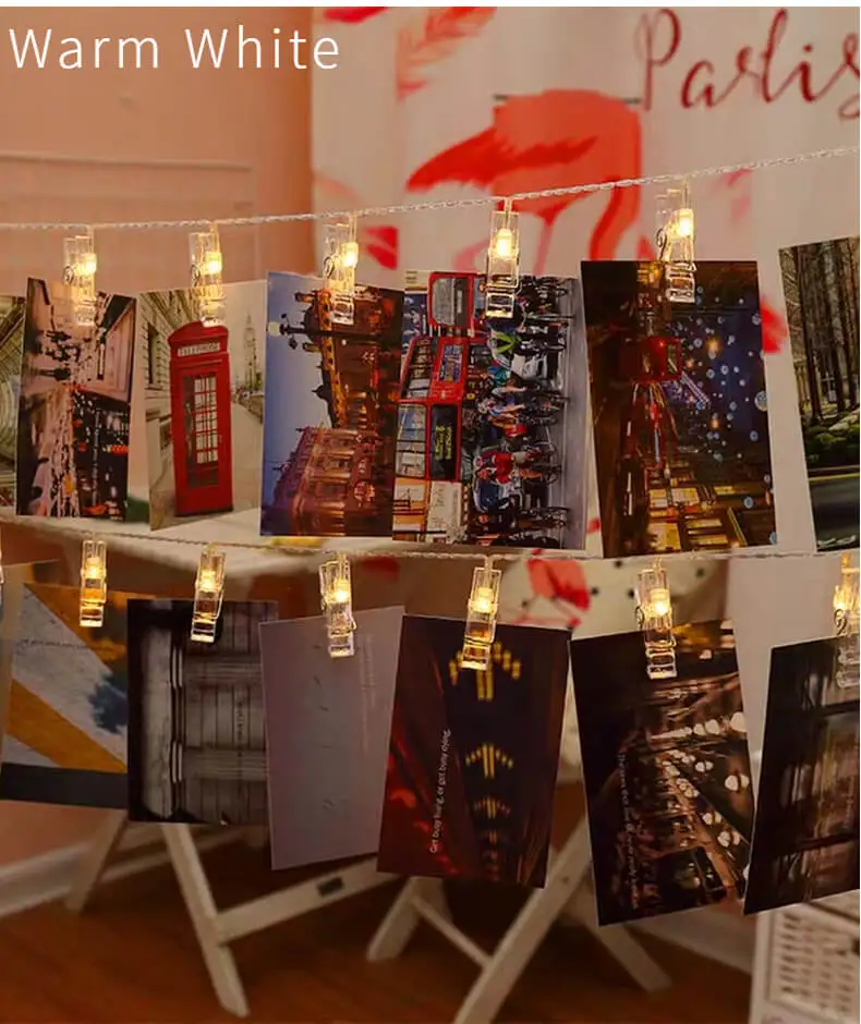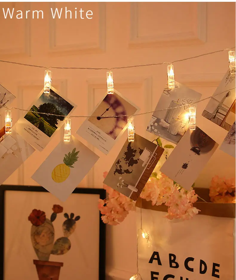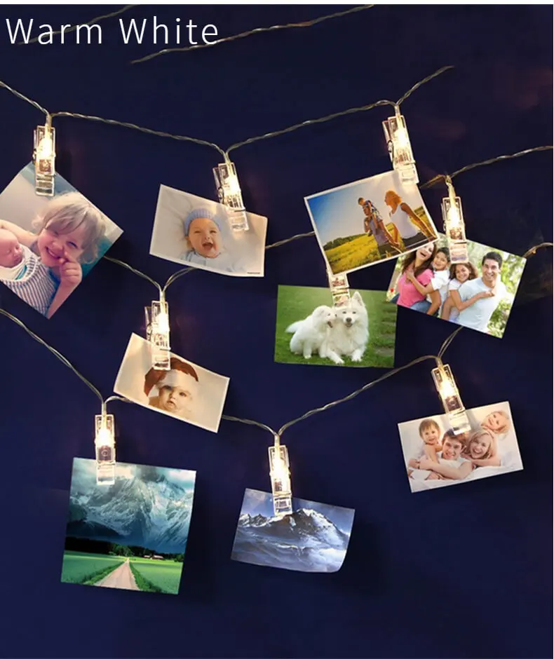 1. Энергосбережение, низкое потребление, экологичность. 2. Отличное освещение светодиодные лампы создают r Омантические световые эффекты идеально подходят для сада, гостиной, столовой, спальни, свадьбы, вечерние, Дня Святого Валентина, Хэллоуина, Рождества и т. д. -Спецификация: 1. Цветной светильник: теплый белый светильник. 2. Посылка включает в себя: 1 светильник без батарей. 3.Аксессуары: размер одного фото клип 5,5 см, весом 5,5 г.** Разница между батареей, USB, вилкой и пультом дистанционного управления **