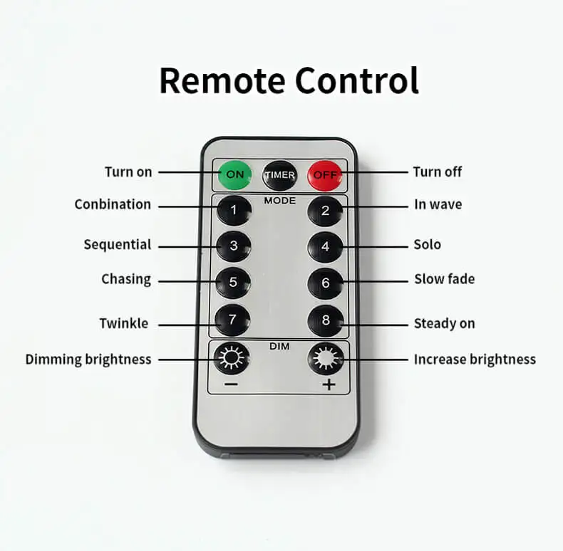 1. АккумуляторПоместите батарейки типа АА в батарейный отсек, и светильник загорится. Есть три режима: устойчивый, мигающий, выключенный. 2.USBПодходит для устройств с usb-разъемом, зарядным сокровищем, ноутбуком. 3. Штепсельная вилка европейского стандартаЕго можно подключить к источнику питания 220 В. Два светильника можно подключить вперед и назад для отличного украшения. Светильник 3M plug string с простым контроллером может переключать режимы: устойчивый, медленно выцветает и т. Д. Светильник с вилкой 6 м не имеет контроллера: вилка подключена к источнику питания 220 В, и светильник включится. 4. Пульт дистанционного управления Светильник с пультом дистанционного управления работает от аккумулятора, он может регулировать яркость и выбирать режимы: сочетание, волны, последовательно, slo glo, чеканка, медленное выцветание, мерцание, постоянное включение, выключение.-Примечание: