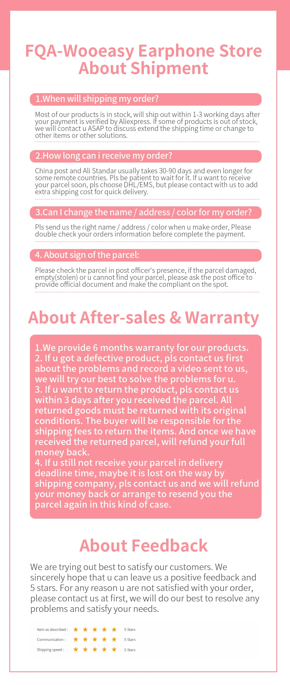 Магазина Wooeasy Earphones Store работает с 01.03.2013. его рейтинг составлет 94.76 баллов из 100. В избранное добавили 34147 покупателя. Средний рейтинг торваров продавца 4.8 в продаже представленно 426 наименований товаров, успешно доставлено 73783 заказов. 6948 покупателей оставили отзывы о продавце.