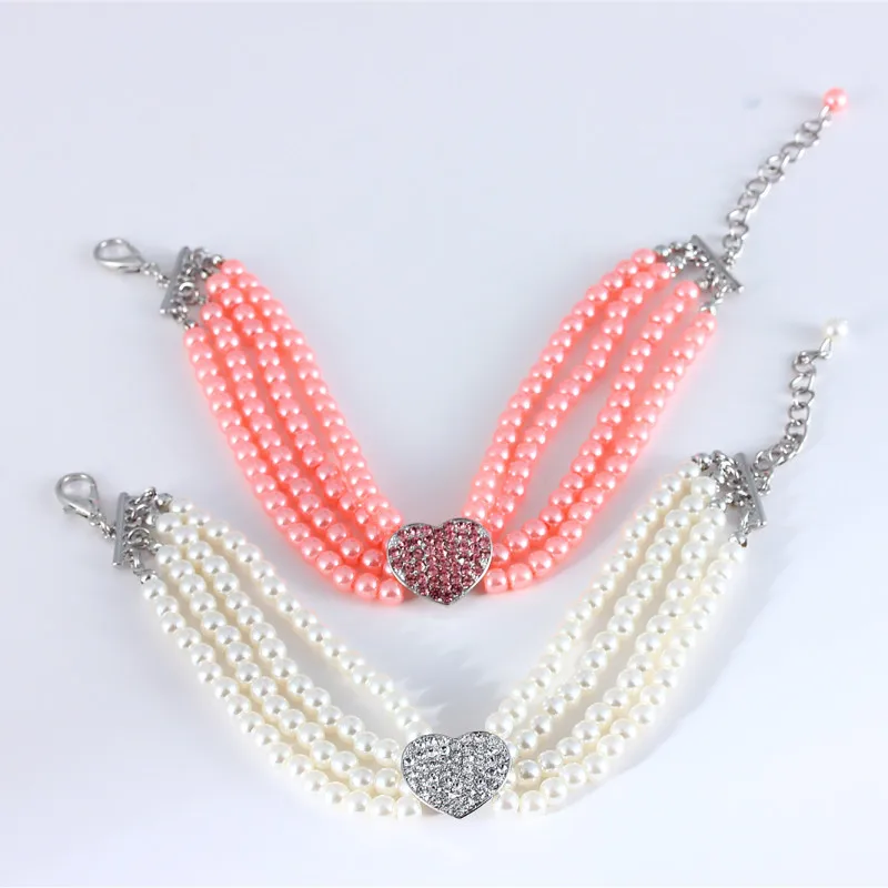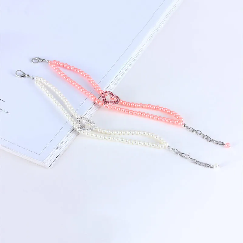 Маленький ошейник для щенка, ожерелье с животными ошейник, жемчуг с блестящими стразами, подвеска в форме сердца, ошейник для кошки, ювелирные изделия, мягкие товары для домашних животных