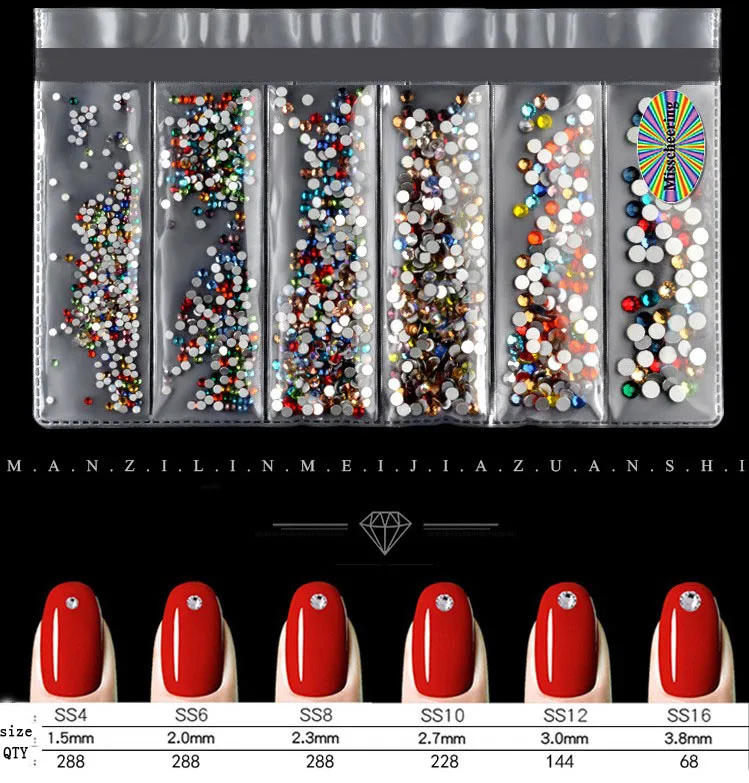Стразы для ногтей Flatback, смешанные размеры, SS4-SS12, украшения для ногтей, камни, блестящие драгоценные камни, аксессуары для маникюра, 35 цветов