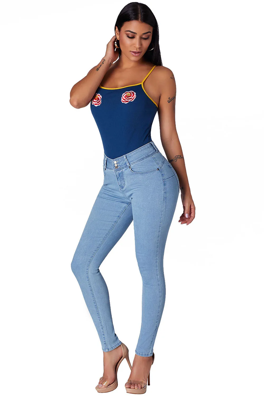 LC786015-2 черные облегающие джинсы с манжетами . Застежка на 3 пуговицы и средняя посадка . Классический дизайн с пятью карманами, стиль с петлей на поясе . Мягкий эластичный материал идеально облегает ваши изгибы . Обтягивающие джинсы хорошо воспринимаются женщинам всех возрастов . Свернутый стиль манжет-это вечная мода и популярный мир . Оптовая продажа джинсов для женщин с различными модными дизайнами онлайн