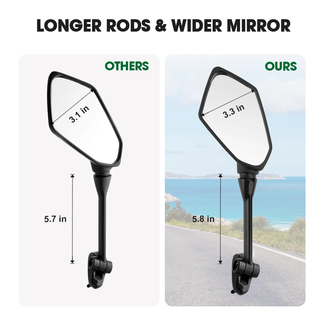-Напротив, этот продукт более склонен, чем другие, что делает область зрения более широкой во время вождения. -Используйте blue threadlocker (как LOCTITEE), чтобы держать продукт вдали от вибрации или свободной.