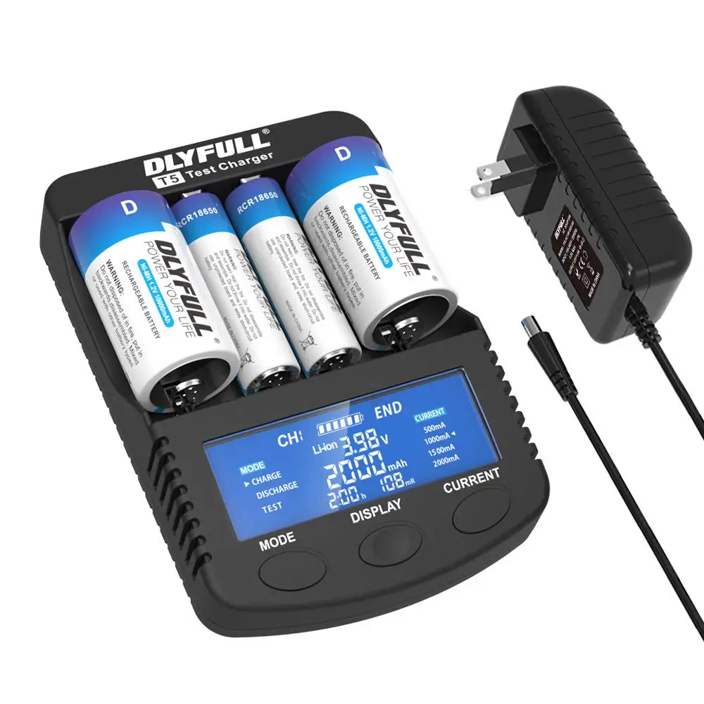 DLYFULL Pro супер быстрый Батарея Зарядное устройство с ЖК-дисплей Дисплей, 4 слота Универсальный Батарея Зарядное устройство для 3,7 в Li-Ion 26650 22650 26500 18650 17500 17335 14500 & AA AAA C SC D никель-металл-гидридный аккумулятор с компакт-дисков Перезаряжаемые батареи