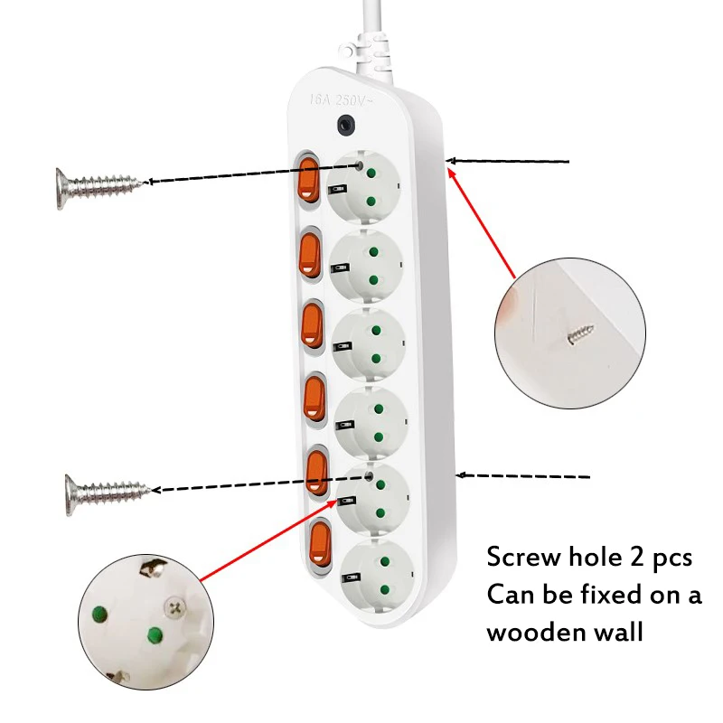 Мощность полосы Защита от всплесков напряжения штепсельная вилка европейского стандарта 3/4/5/6 точек 16A электрическая розетка удлинитель .. US $13,99-24,99