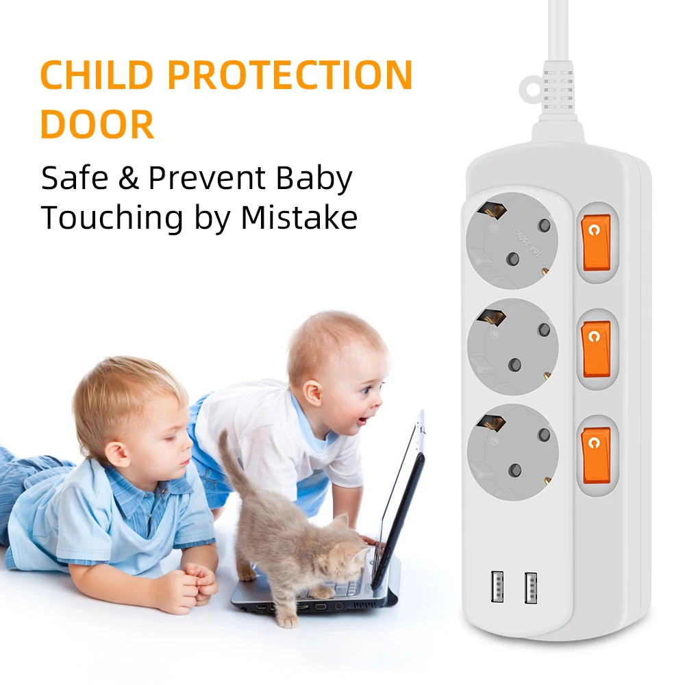 Удлинительный шнур 2 м Защита от перенапряжения 3 розетки электрическая розетка с USB 5 USB... US $19,99
