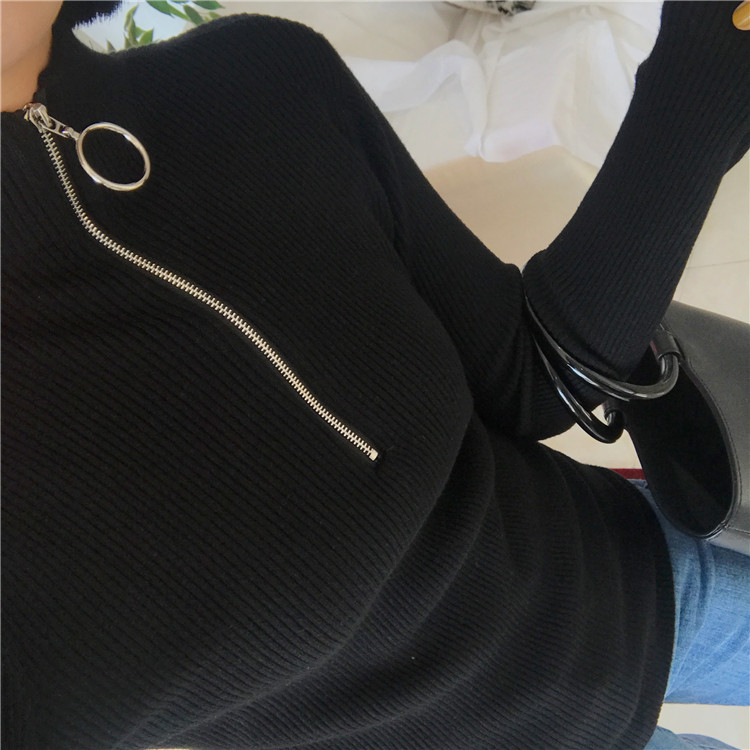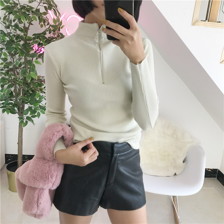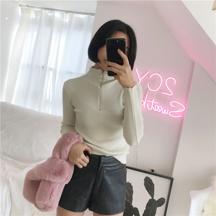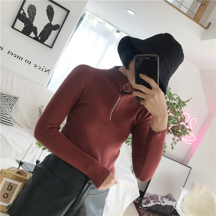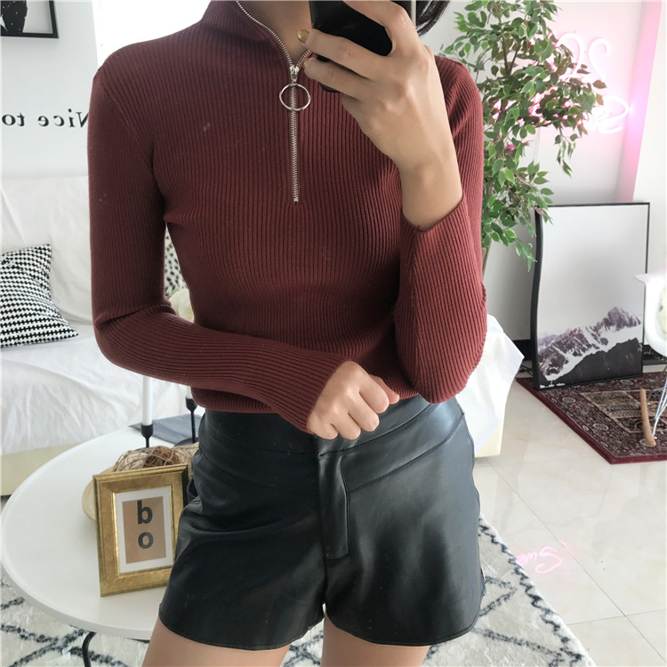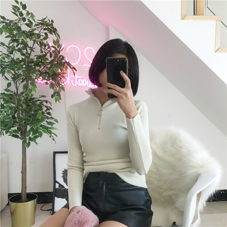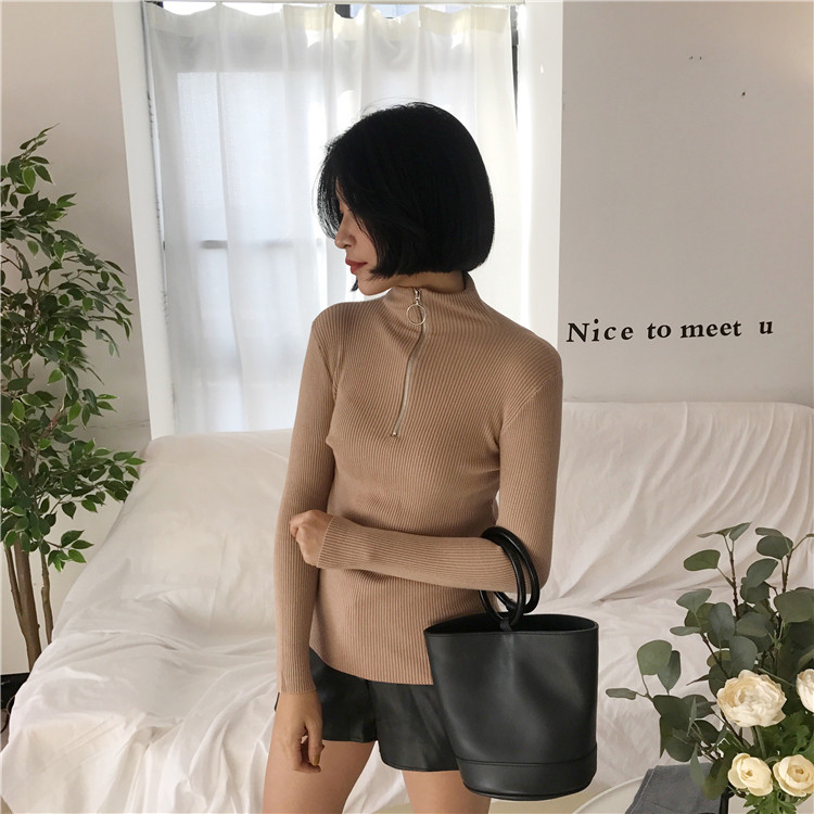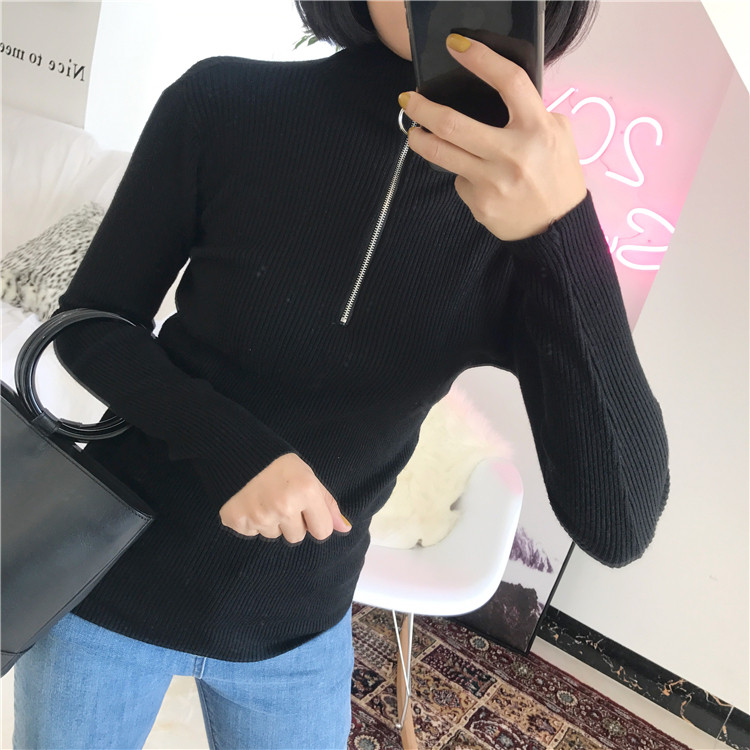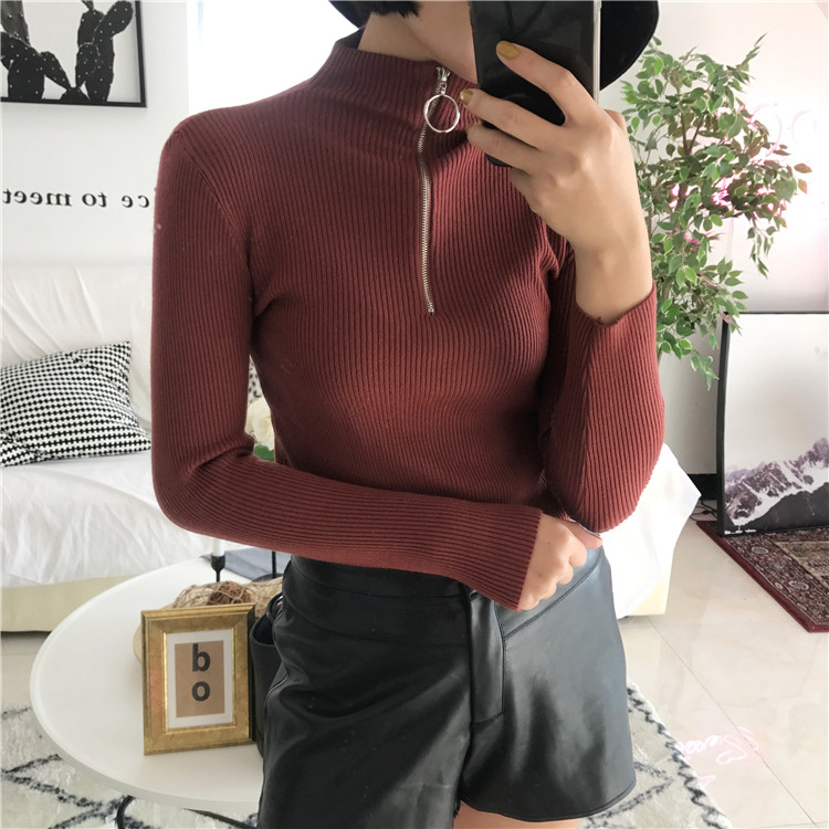 Новинка 2018, осенне-зимний свитер, Женский пуловер на молнии, свитер с длинными рукавами, приталенный свитер с полувысоким воротником