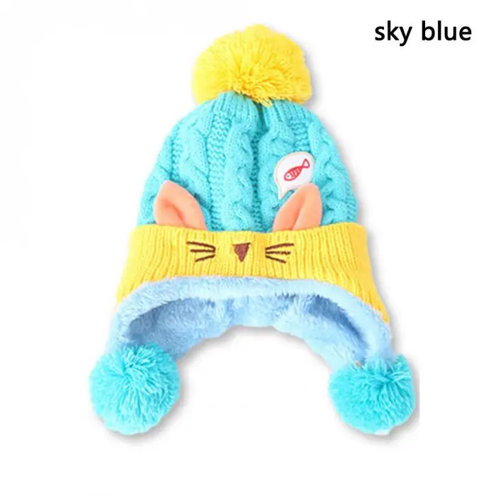Зимние вязаные шерстяные теплые наушники кошка шапочка пушистая теплая шапка для маленьких мальчиков и девочек флисовая шерстяная шапка s AN88