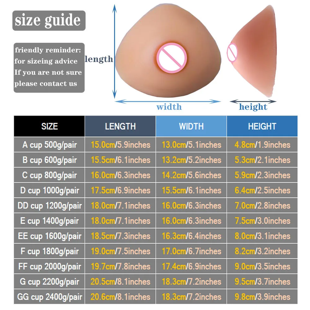 1. Какой размер чашки вы хотите? 2. Какой размер груди/бюстгальтера вы носите в см/дюймах? 3. Выберите размер в граммах, где пересекаются шаг 1 и 2. Пример: размер груди 97 см/38 дюймов и размер чашки DD, пожалуйста, выберите размер 1800 г