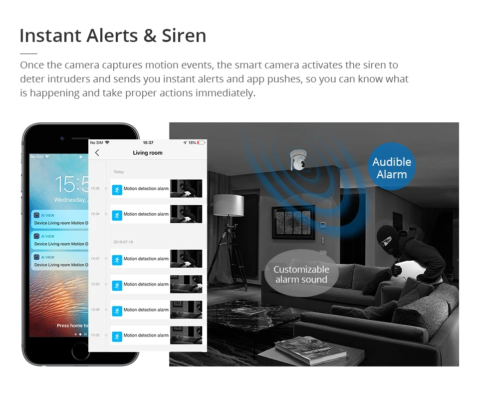 Wi-Fi baby monitor может автоматически отслеживать движущийся объект и отправлять вам мгновенные оповещения о обнаружении движения. Вы никогда не пропустите ни одного важного события.