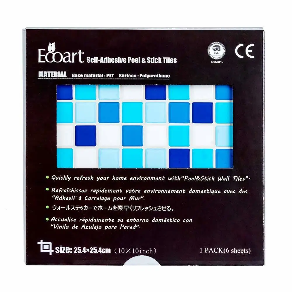 Модель: 6 упаковок 3D наклейки на стену (синяя мозаика) Размер одной наклейки на стену: 25,4x25,4 см (10 х 10 дюймов) Зона покрытия: 4 квадратных фута (0,38 квадратных метров) Особенности: Термостойкий/Огнестойкий/водонепроницаемый
