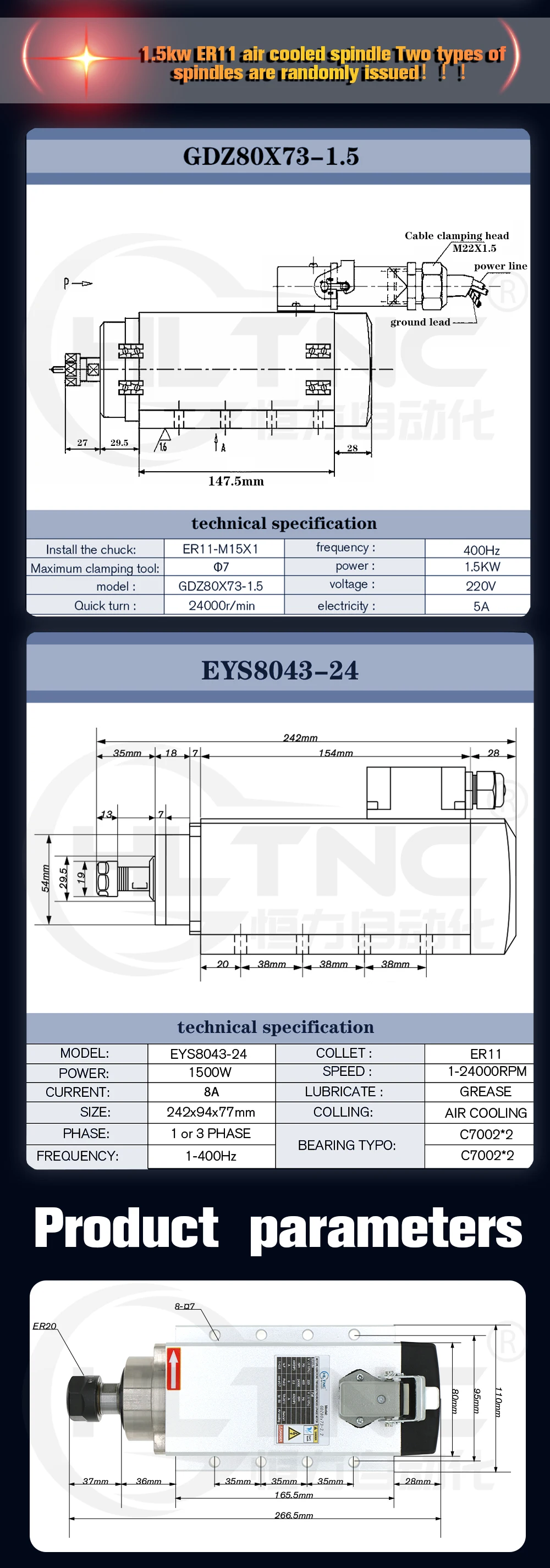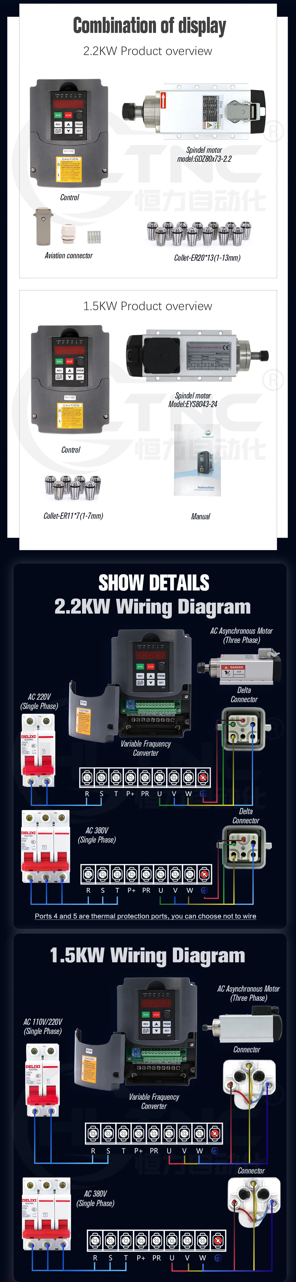 Шпиндель с воздушным охлаждением имеет два типа: Распределительная коробка и воздушная вилка. Если нет определенного требования, он будет отправлен случайным образом!