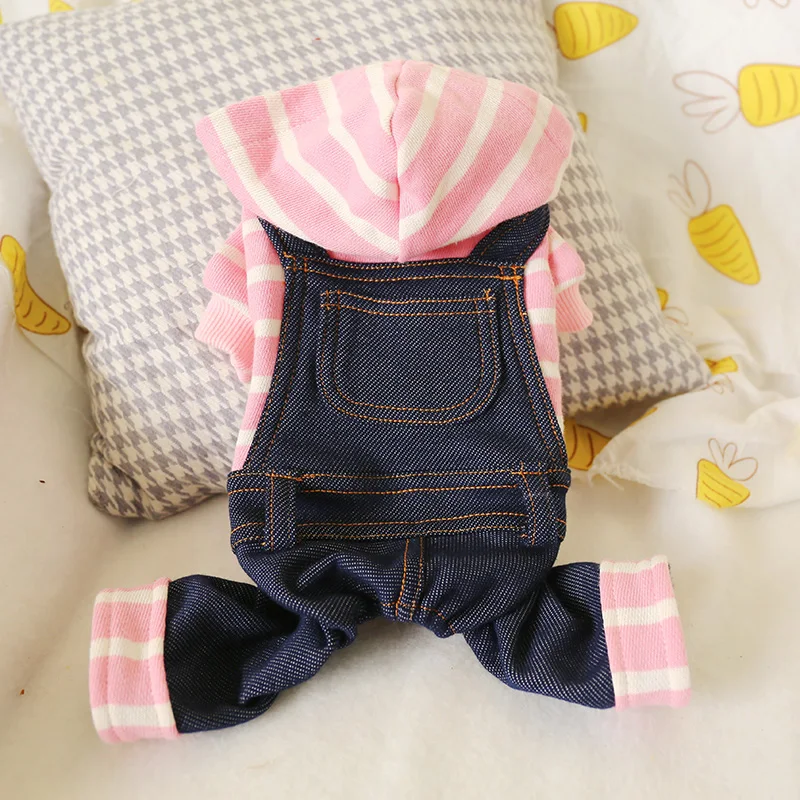 Комбинезон для собаки в горошек, одежда для собак, капюшон в полоску, джинсовая теплая одежда для собак XS S M L XL