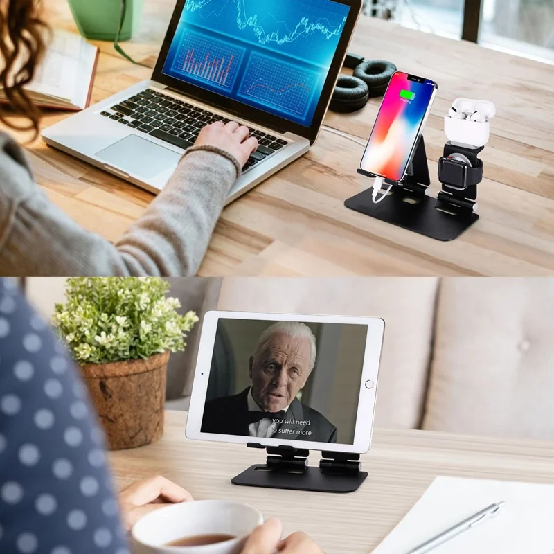 Tongdaytech Настольный держатель для телефона Подставка для iPhone 7 8 X XS 11 Pro Max Soporte Movil металлический держатель для мобильного телефона Подставка для Apple Watch 6 5 4 3 2 1