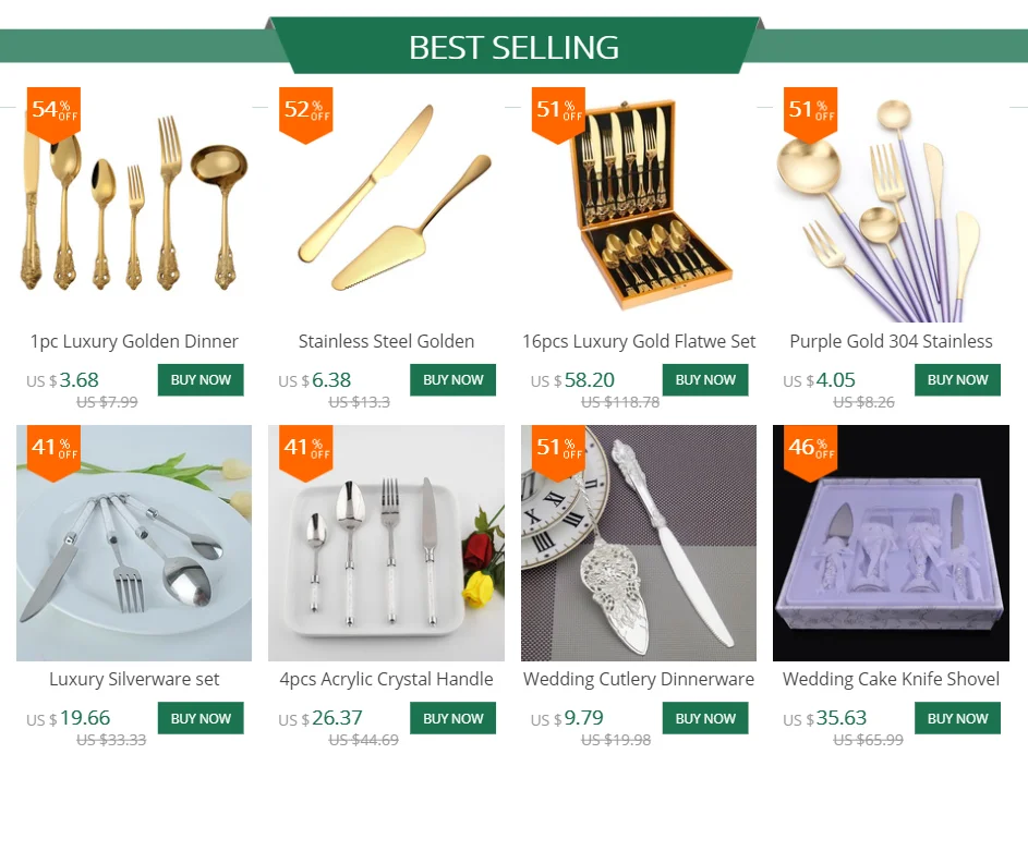 Набор золотых столовых приборов из нержавеющей стали 18/10 зеркальная полировка