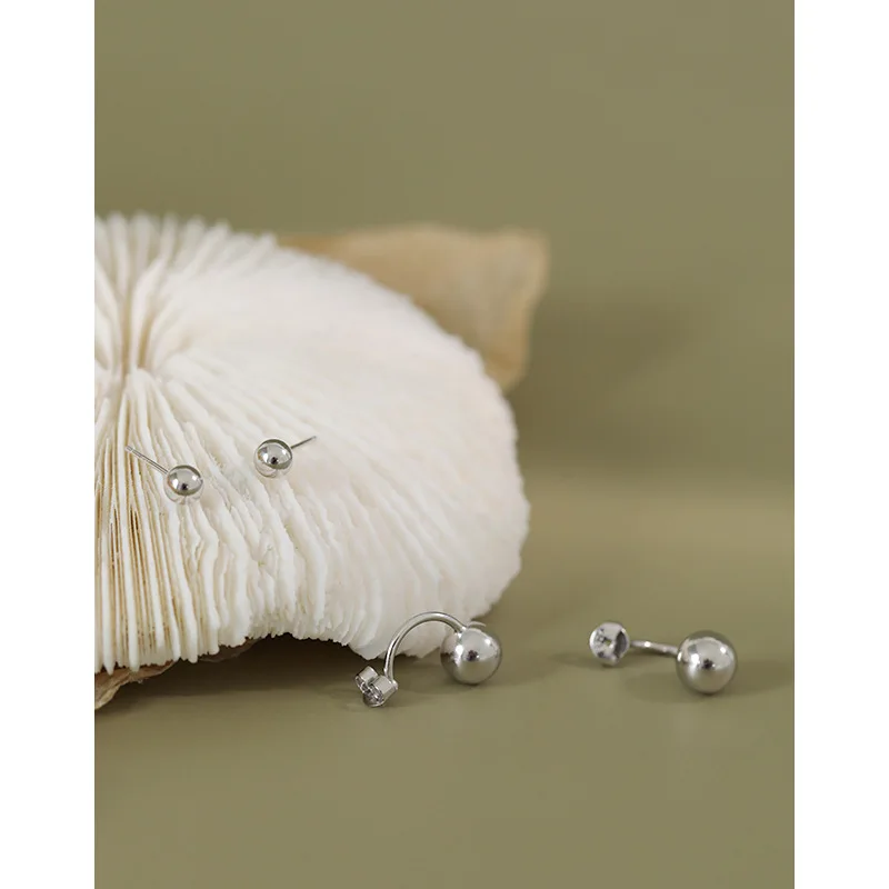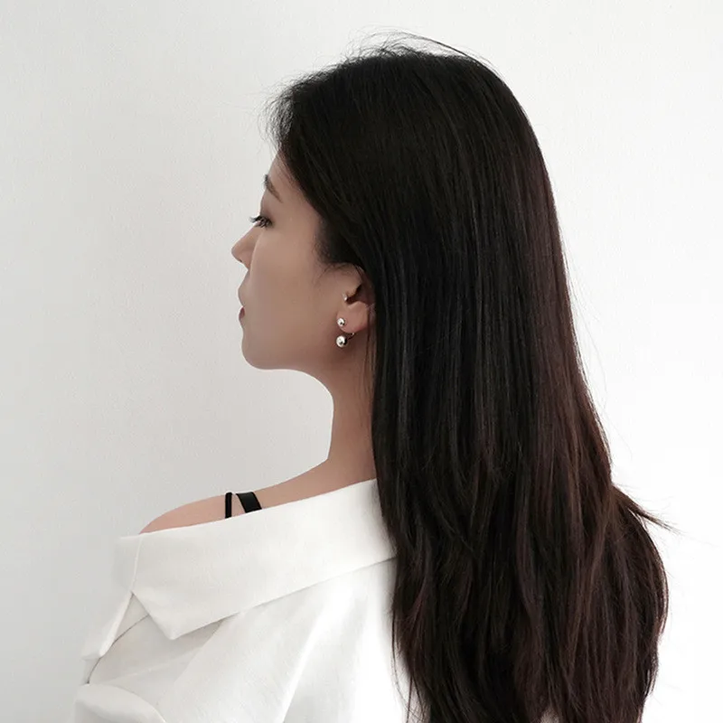 Серьги-гвоздики с двумя шариками для женщин и девочек, 100% натуральная Стерлинговое Серебро 925 пробы, серьга Brincos, изящные вечерние ювелирные изделия, подарок