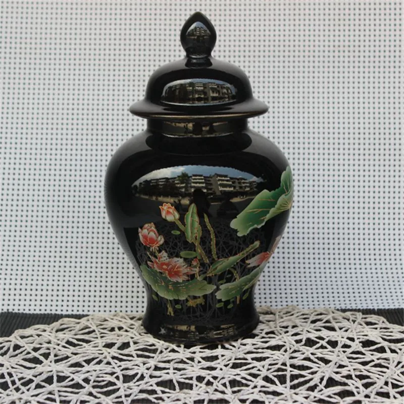 Керамический лотос черный цветок лотоса верхний горшок для хранения