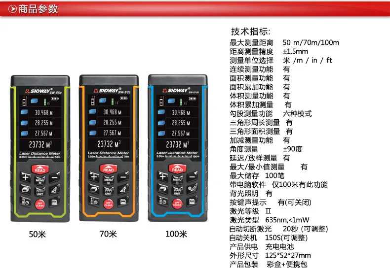Этот магазин продаж лазерный дальномер deep Dawei бренд начал три ручной Высокоточный геодезические приборы, точность 1,5 мм, Использовать 2,4-дюймовый цветной экран, с китайским единиц, аккумуляторные батареи и зарядные устройства, площади, объема, треугольник, повесить трубку измерения, универсальный пузырьковый уровень, 100 групп хранения данных, максимальное минимальное значение и функции, такие как непрерывное измерение.