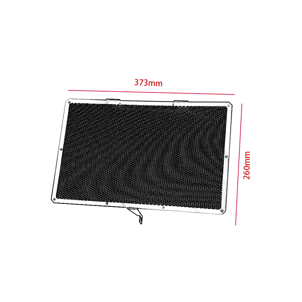 - Quadrilateral hole pattern to optimize airflow whilst providing maximum protection from road debris. - CNC machined from aircraft quality Aluminum. - Powder coated for longevity. - Enhance the looking of your bike. - Easy Installation.