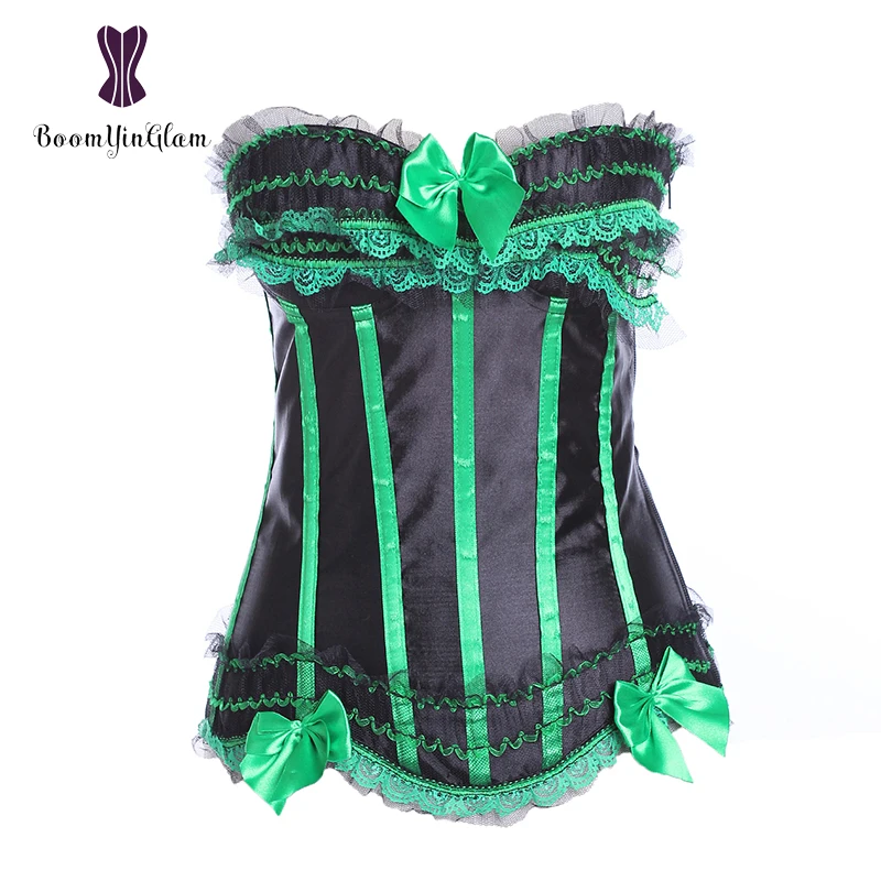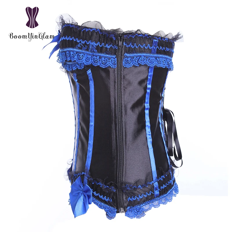 Классический черный атласный корсет размера плюс со шнуровкой бюстье корсетный